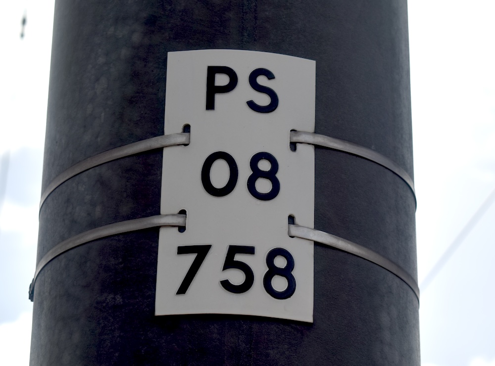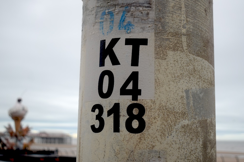 Blackpool Tramway masts use a system whereby the masts act as distance markers from the datum point near Starr Gate. Prefixes are based on electrical sections, the 'joining' mast carrying three letters. Section codes known at present are: