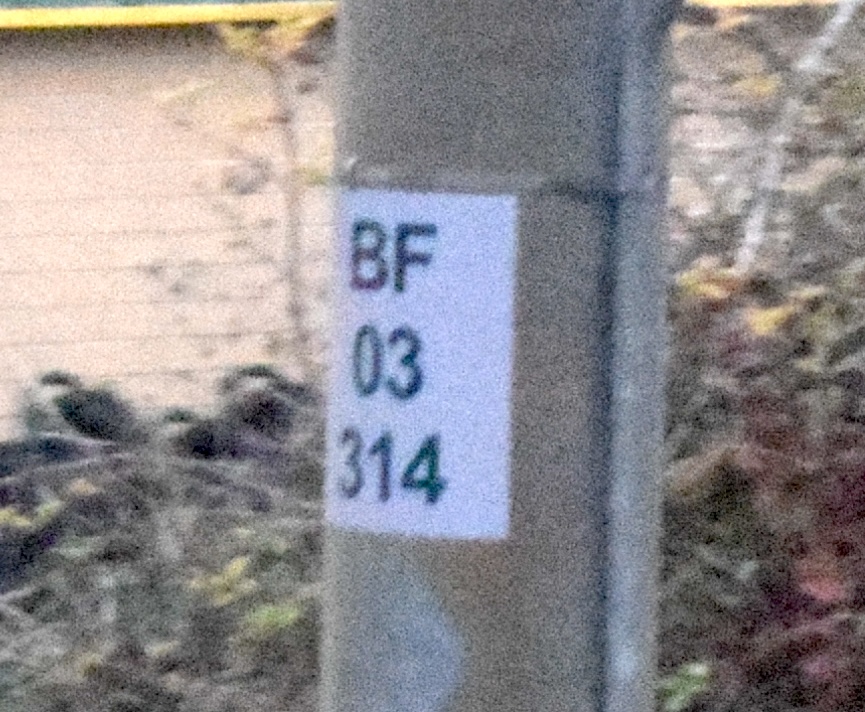 Other 'joining' mast codes can be inferred but were not seen on the editor's visit. Masts on the North Station branch did not have visible identification when seen in September 2025.