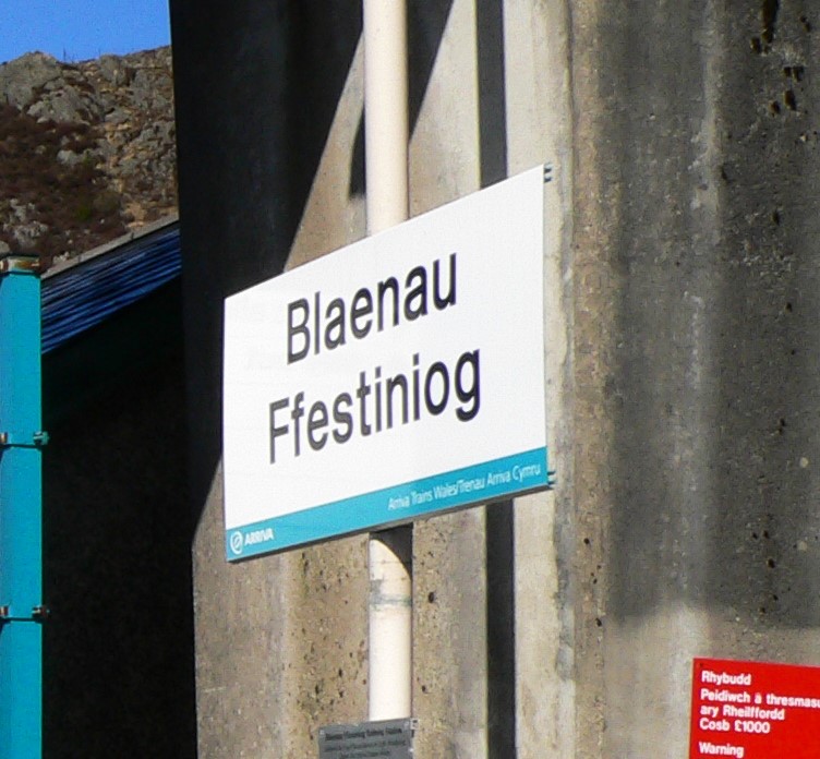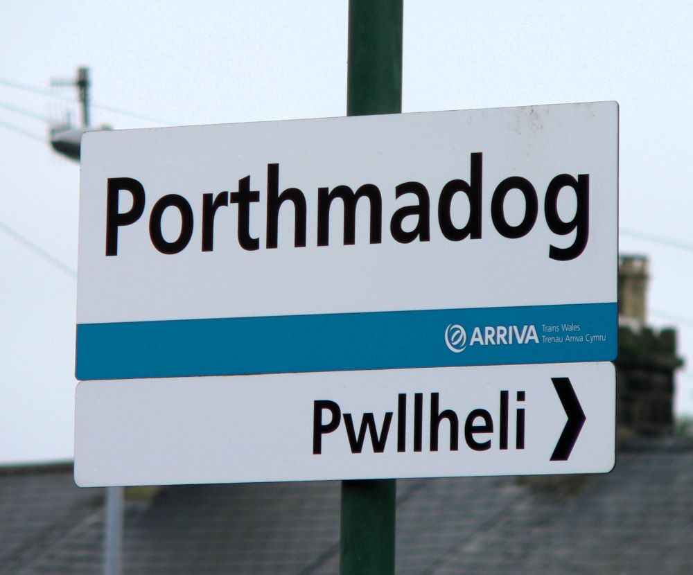 | Porthmadog Porthmadog For Ffestiniog and Welsh Highland Railways | no translation Porthmadog I Reilffyrdd Ffestiniog ac Ucheldir Cymru English and Welsh only apply to suffix; no translation of place name |