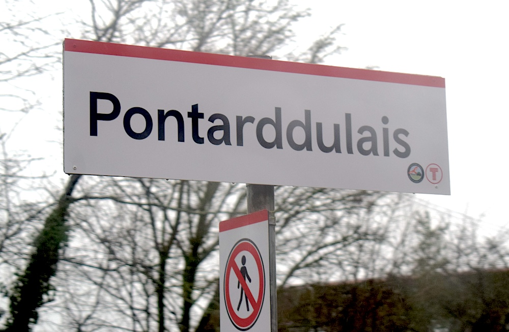 | Pontypridd | no translation Croeso i Bontypridd 'Welcome to Pontypridd'; rendition over station entrance |