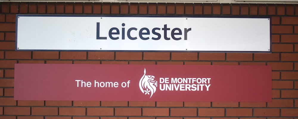 Leicester | De Montfort University | The home of(in white text on maroon with logo to right) Photo: 13 September 2025 |