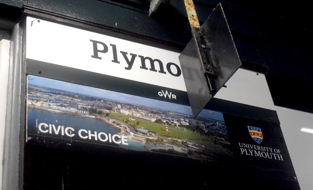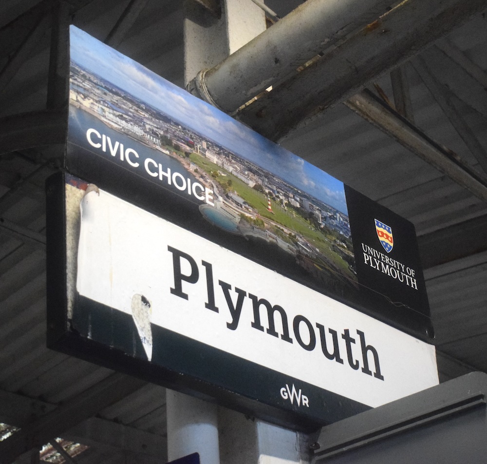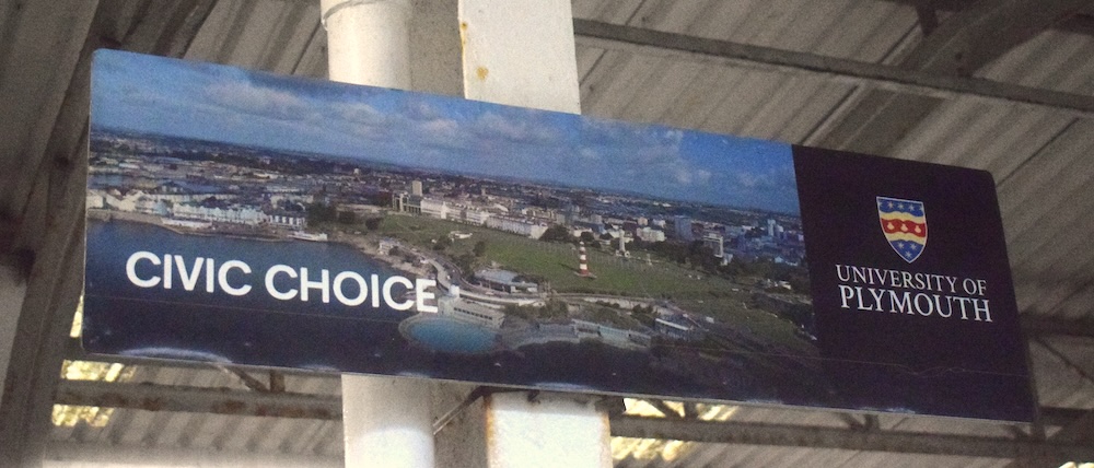 | Plymouth | Plymouth University | Civic choice(in white text under urban image to left, logo to right) Standalone post mounted version Photo: 14 November 2025 |