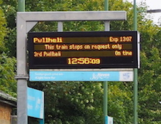 | Port Talbot Parkway | none | blanked sign Wall mounted version Arriva Trains Wales branding on main sign Photo: 27 August 2018; removed by June 2019 | ![]() |