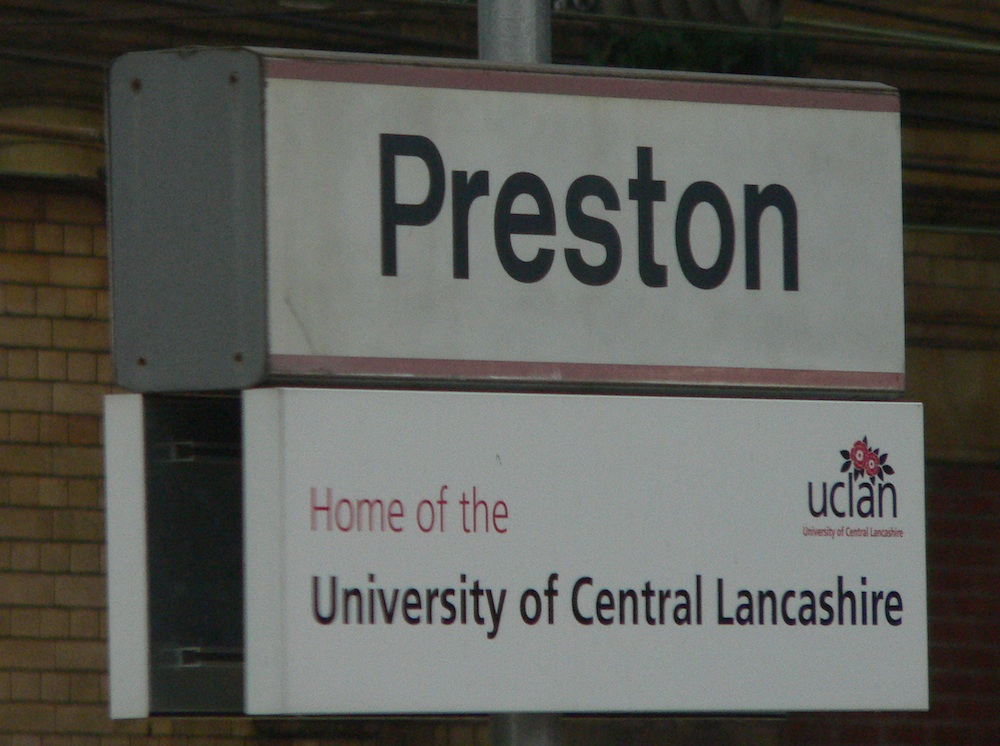 | Preston | University of Central Lancashire | Home of the University of Central Lancashire(text to left with logo to right) Stand alone version Photo: 21 August 2021; still present 11 April 2023; removed by September 2025 |