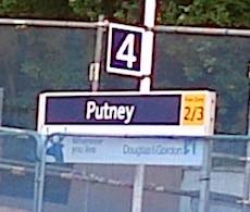 | Putney | Douglas & Gordon | Home of Douglas & Gordon London's most innovative estate agent(in blue text with &in light blue; logo to right and multi-coloured blue band above) Sponsored sign below name sign Photo:24 June 2009; removed by 2011 |
